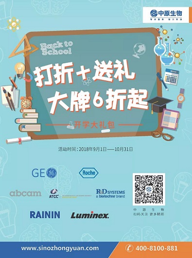 恰逢今年是abcam成立的20周年,值此20周年庆典之际,衷心感谢各位伙伴和用户对Abcam的支持,中原携手Abcam为您带来多种优惠活动。2018-10-17 15:27:00.0