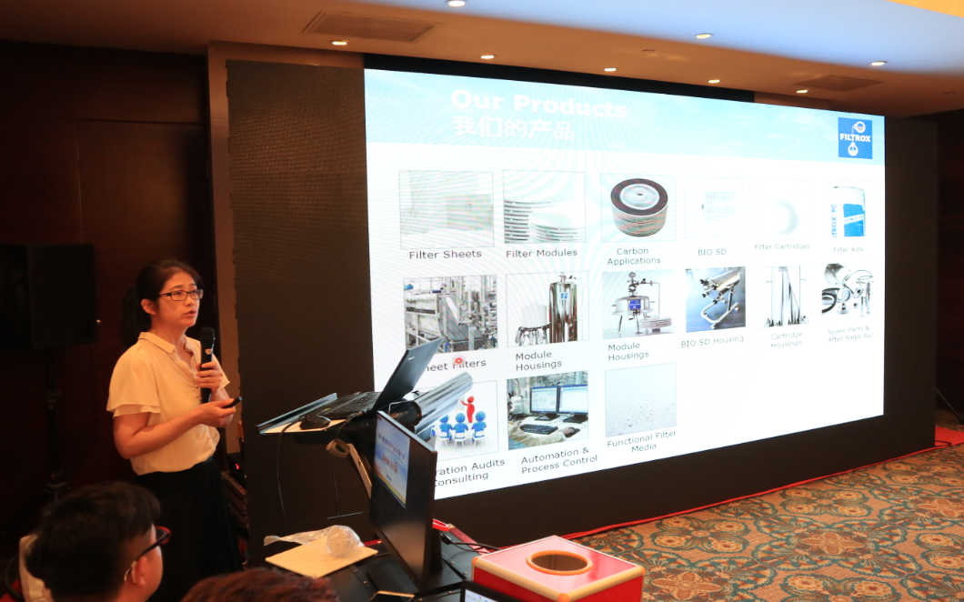 Filtrox公司营销总监何群对“高密度培养液/发酵液的澄清过滤”进行了主题演讲