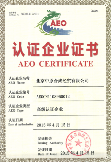 Zhongyuan Company strictly abides by national laws and regulations in import and export, and has maintained excellent customs records. In 2010, it was rated as AA import enterprise by the General Administration of Customs of China. In 2015, it became an AEO senior certification enterprise, achieving rapid customs clearance and import and export. Low customs inspection rate.