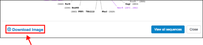 Beyond these simple but powerful display improvements, when you click on any plasmid map, you also have the ability to to download the static image file (PNG, see above) for your own reference or to paste directly into your notebook. This will make it easier for you to share plasmid information with colleagues, or explain plasmid features to a lab member when you’re not at your computer.